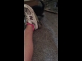 Xena seemed to have a birth defect in her left front leg, it knuckles under, but usually they grow out of that. She was anemic and it was quite a challenge to turn her around, and now she is eating and doing very well!! That is why we have named her Xena, she is a little warrior princess!