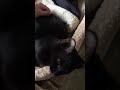 Little Guy was found in a neighborhood & being chased by big dogs. He was scared of humans but would purr when you cuddled him. He is great now at coming to you and being picked up, and playful, wow is he ever having a blast with his toys!