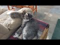 After Abraham was returned to our rescue, he was being fostered in a busy home with a hyper dog, and several extremely playful young adult cats. Combined with the change of home, he got too stressed and he was diagnosed by 3 veterinarians with stress-related urinary inflammation. This is very common in male cats.... he would go to the pan multiple times a day and pee very small amounts, keeping his bladder empty. He was tested for crystals, infection, checked for bladderstones, and was all clear, so definitely stress.